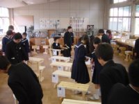 ただ一点問題点があるとすれば、あまりにも大きすぎて自転車や徒歩で持ち帰れないということでしょうか。これまでの棚は自転車にくくりつけさせましたが、そうもいきません。今回の選択技術では、保護者に車で持ち帰ってもらうことになっています。なにかよいアイデアがあったらぜひ教えてください。