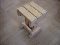 | こちらは松下のページを参考につくったくつろげるイスです。これでも材料費1650円です。 | こちらも松下のページを参考につくったプランターおきです。材料費1050円 | ベンチを一人用に短くしたらイスになりました。ちょっと大きめです。材料費750円 | ボルトを4本使ったオリジナル設計の踏み台です。かなり丈夫です。材料費1500円程度 |