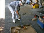 砂型に銅と錫の合金を鋳込みます。※安全面には十分に注意してください。