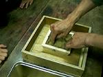 丸棒(直径を60o)を厚さ10oくらいに輪切りをした台の上に厚紙を貼っていきます。