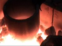 坩堝は黒炭 木とコークスで火をどんどん起こします