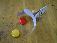 すごく単純であることと、紙(板目紙)や木材を利用したことで、マシンの形は試合を重ねるごとにどんどん変形していきました。そしてどんどん性能も向上していったのにはとてもビックリしました。たかが紙でつくったおもちゃ・・・と思っていたのですが、工夫しながらつくりあげていくおもしろさがあって、生徒達はけっこうはまって改造にあけくれていました。こちらにザリガニロボコンの様子のビデオをのせておきます。ちょっと時間がかかりますが、ぜひみてみてください。