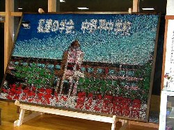 | 文化祭テーマや新校舎が完成する節目という関連から、新校舎をデザインしようということに決定した。当初1円玉アート(アフガニスタン募金も行ったので終了後、募金にする)、ツマヨウジで校舎模型があったが、節目の年で残せるものにしたい、という希望からツマヨウジで検討を開始した。 参考にしたのは高校の文化祭の資料 「 感動の全国文化祭作品集」 |