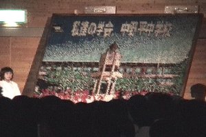 | 幕がおり、スポットが当たった瞬間、大きな歓声に包まれた。作業に関わった生徒達も大満足であった。 展示完成写真も拡大できます |