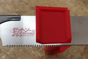 *本治具はゼットソーの利用前提なので、ノコ身の板厚と治具が合うように設計されています。治具に頼り切って切るのでなく、目視で正しく切れているかの確認や調整ができます。