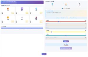 ゲームの操作は非常にシンプルです。画面に表示された6つの電源スライダーを動かすだけ。あなたがスライダーを動かすたびに、CO₂排出量・コスト・安定性といった各指標がリアルタイムで変動します。