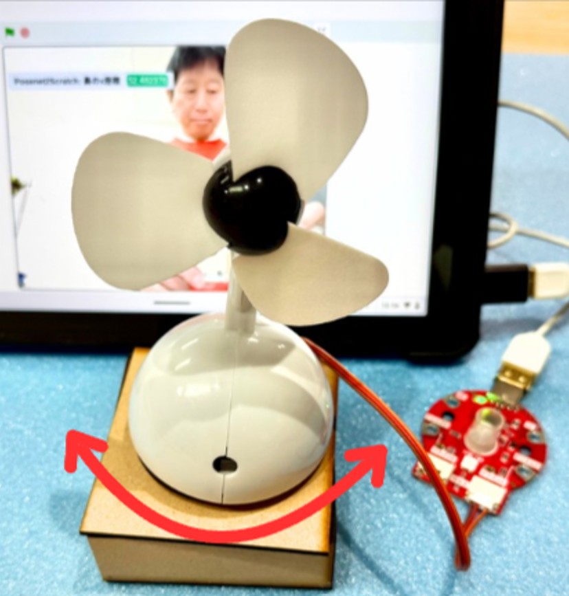 Step 7: 緑の旗をクリックして扇風機の向きが人の顔を自動追尾すれば完成