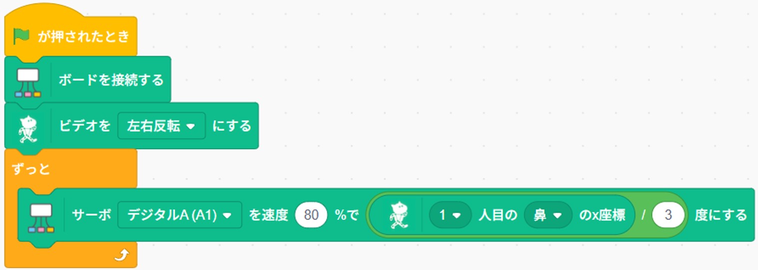 Step 6: 人の鼻のX座標とサーボモーターの角度が連動するようにプログラミング