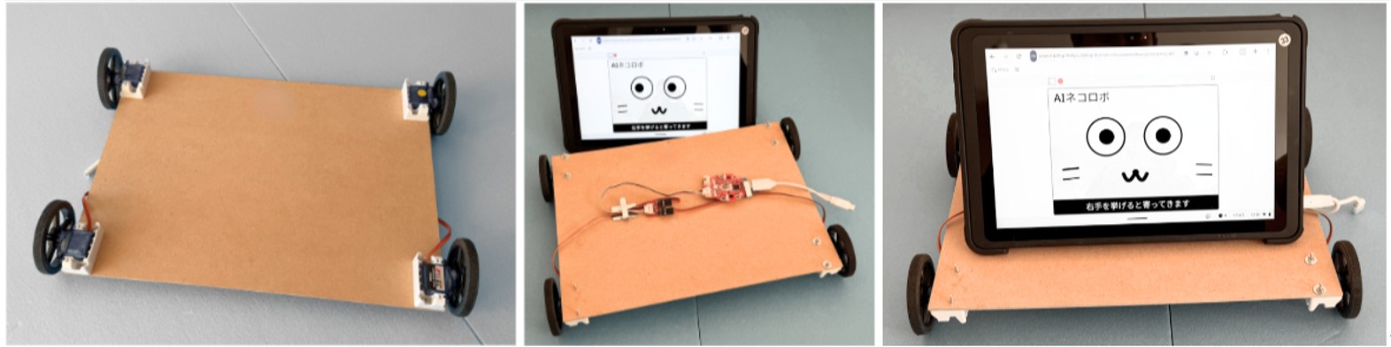 タブレットPCを載せる台車(前輪2輪が連続回転サーボ、後輪2輪はダミー)を作成