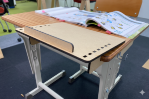 | 【学習机豆知識】 ◯B5サイズからA4サイズ時代へ 学習机には新JIS規格と旧JIS規格があるのをご存じでしょうか?これは、昭和から平成にかけて、教科書やノートがB5サイズからA4サイズにシフトしたのに伴い1999年に改定されました。それぞれの主流の天板サイズは ・旧JIS:横600mm✕奥行400mm✕厚さ約18mm ・新JIS:横650mm✕奥行450mm✕厚さ約18mm になります。 四半世紀経った現在、シェアは半々ぐらいな状況です。◯一人一台端末時代へ 2020年からスタートしたGIGAスクール構想で、一人一台端末が導入された結果、天板面積不足問題が再燃しています。一部では、横700mm✕奥行500mmの机を導入する学校も現れ始めています。 |
