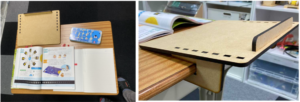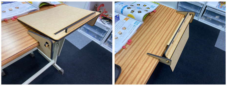 これはわりと良かったのですが、教科書をおけるようにするには10cm程度は突き出さないと実用的にならず、突き出し部分が邪魔になると考えました。