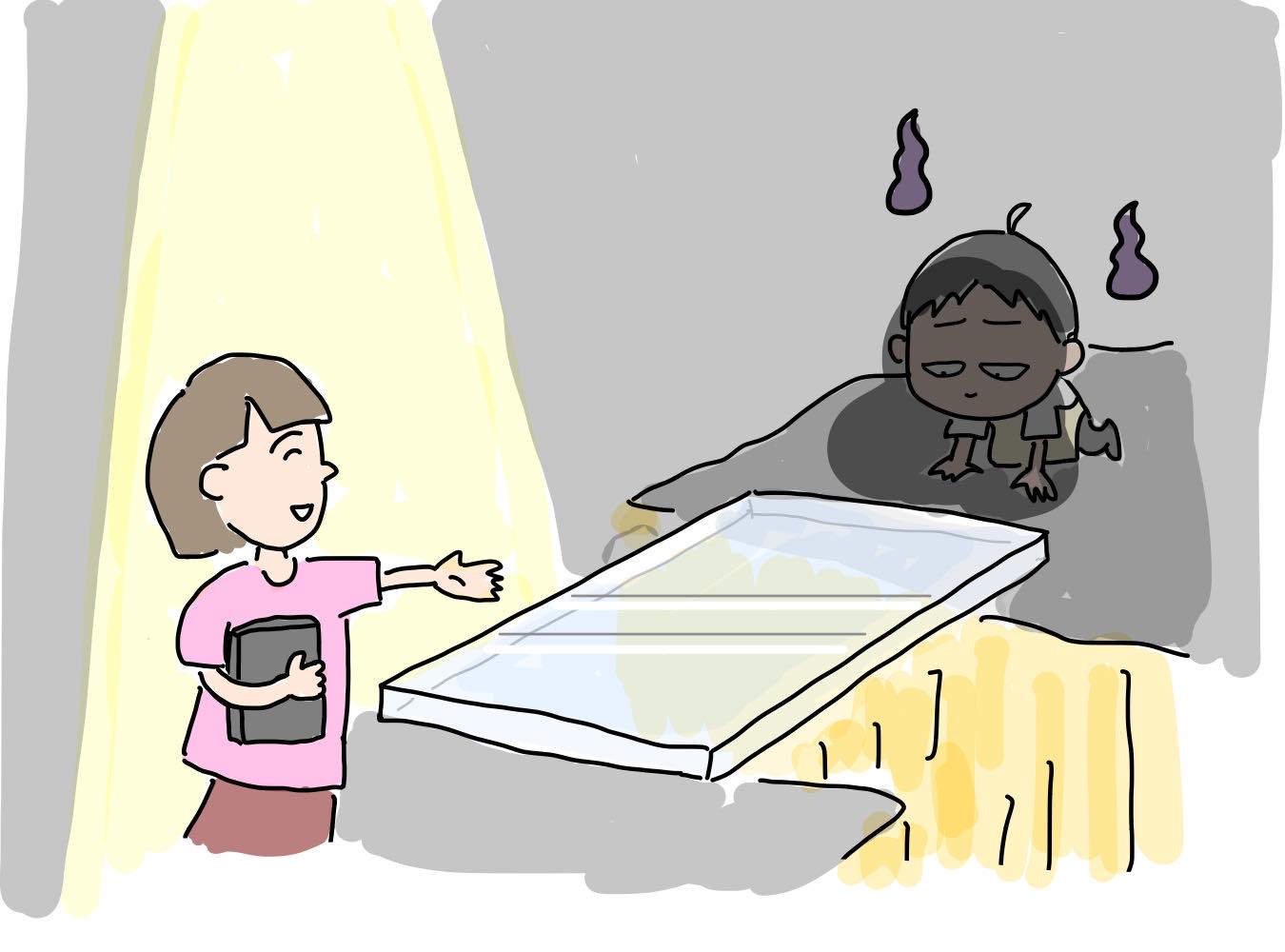 娘「それじゃ、邪魔でグループ学習が出来ないでしょ」