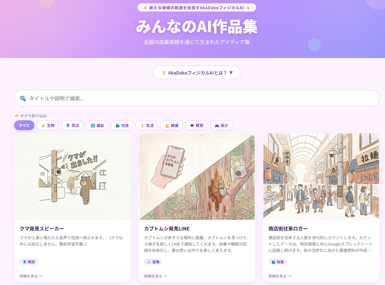AkaDakoのAIを活用した全国の授業実践(AkaDako生成AIカメラパイロット校、他)を元にAI作品集を作りました。