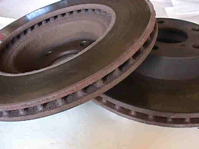 上の写真は新品のディスクロータです。下の写真は交換した使用済みのものです。