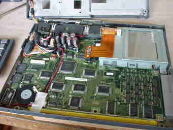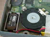 充電池とモデム装着スペース(モデムの基板は取り付けられていません。)
