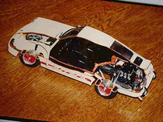 | ポルシェのレーシング・マシンです。エンジン、トランスミッション、足まわりのメカニズムがすごい!! | ||