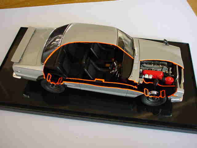 | カットモデルにして、こうして見ると、なかなか立派な教具ですね!!(スカイラインGTR) | ||