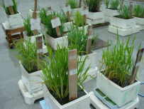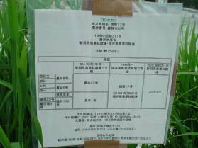 栽培しているイネの品種ごとに来歴や特徴を解説したプレートを表示しています。