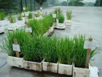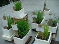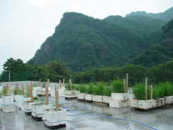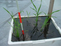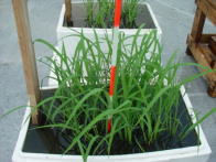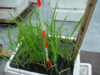 中学校の校舎屋上で、発泡スチロール箱を使って栽培しています。