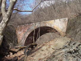 碓氷線の建設当時のカルバート(溝橋)は21ヶ所で、石蓋は6ヶ所、その他は煉瓦造アーチ橋(煉瓦拱橋)でした。桁橋を使用しなかったのは、アプト式軌道は、線路の中央に歯状の軌条(ラックレール)があり、鉄製枕木の全体を支持できる構造を必要としたためでした。