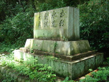 横濱市水道ハ英國人技師故ハーマー氏ニ委嘱シ水源ヲ北ノ地ニ索ノ明治拾八年四月起工シ同貳拾年九月竣成セルモノニシテ是レ實ニ本邦ニ於ケル新式水道ノ濫觴ナリ茲ニ其ノ五拾周年ノ記念ニ方リ之ヲ建ツ 昭和十二年十月 横濱市長 従四位勲二等 青木周三 |