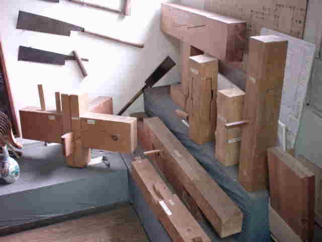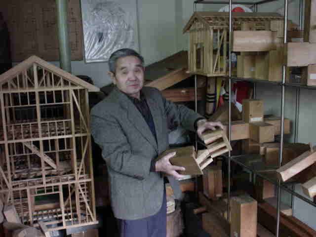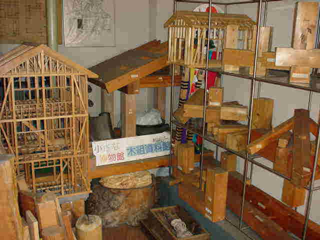 | 館長の森下良治さんです。展示物についてわかりやすく、 また詳しい説明をして下さいました。特に木組については たくさんの種類におよぶ貴重な実物を、実際に触って確か められ、木組みの複雑な技術のすばらしさと、木造建築の 技術史を実感できました。これらの木組み(継手・仕口) は、同業者も見学に来るそうです。すごい! |