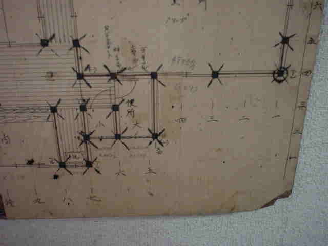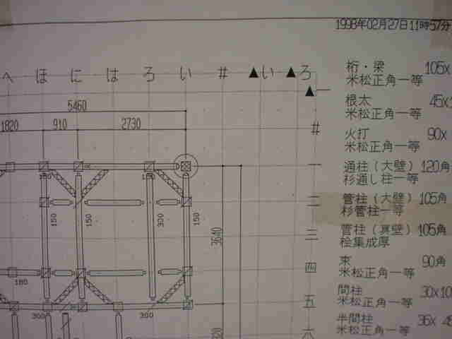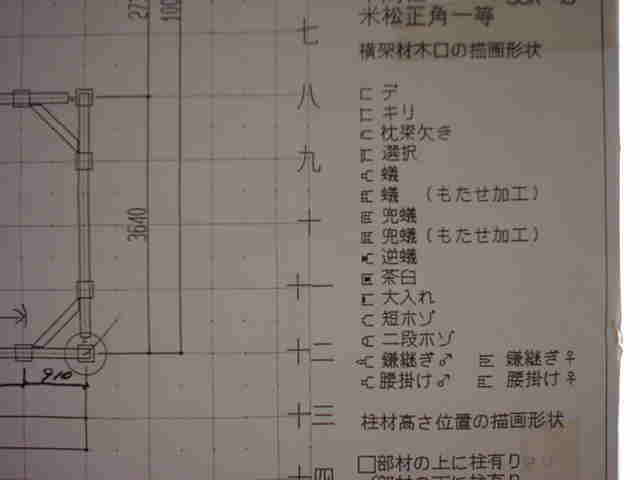 | 現在の図面。番付は右上から始まっています。 | 木組の指定があります。 |