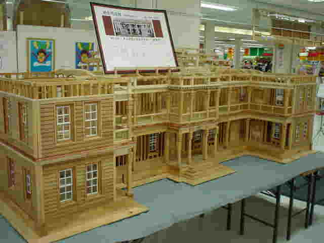 会場中央には、建築科の生徒により1995年から製作がはじまった「桐生明治館」の縮尺1/10の模型が展示されていました。精巧な模型に思わず見入ってしまいました。