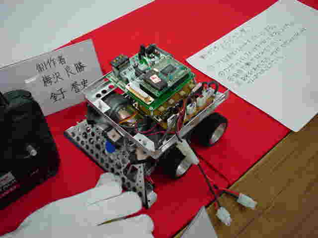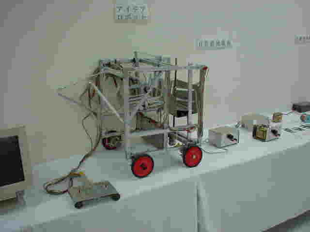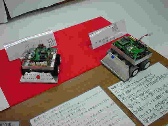 | 競技用の「自立型」ロボットです。 | こちらは「ラジコン型」ロボット | おっと「電気科」の生徒の皆さんが製作したロボットもありました! |