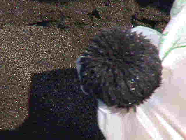 今回の砂鉄採集を手伝ってくれた東京・国分寺に住む旧友の小林君(・・・ほんとうに感謝!感謝!です)は、通りかかった人に「こんなところで、ウニを採っているのかと思ってびっくりしましたよ」と言われていました(^^)。確かに、磁石についた砂鉄は、そんなふうにも見えますね。この黒っぽいのが砂鉄だって気が付く人は、ほとんどいないでしょうね。