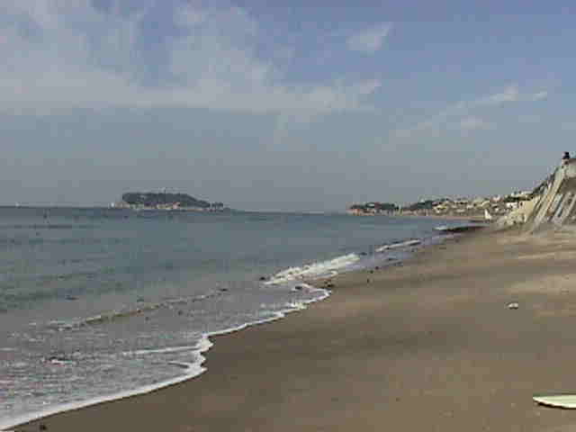| 遠くに江ノ島が見えます! | 稲村ヶ崎方向です。砂浜が黒っぽい! |