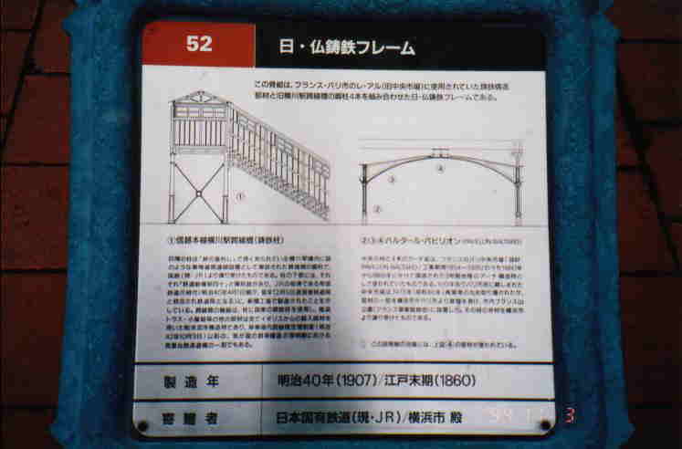 鋳鉄フレームの四隅の柱は、信越本線横川駅構内に架設されていた跨線橋の脚柱で、日本工業大学・工業技術博物館が日本国有鉄道から譲り受けたものです。