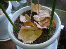 下の方の古い葉を取り除いてやっています。
