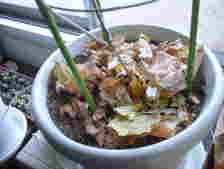 落ち葉も肥料として生かします。土の中へ埋めました。