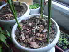 屋内で栽培しているものも葉の色がいちだんと変色してきています。