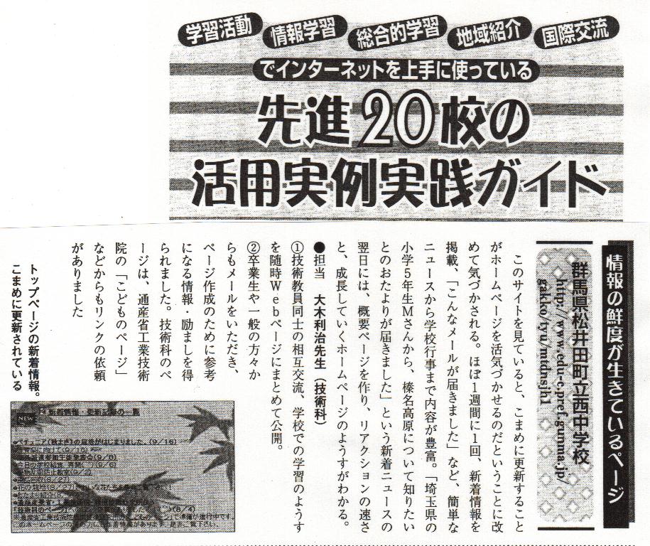 小学館の教育雑誌「中学教育11月号」(10月14日発売)に本校のWebページが紹介されました(p.70)。