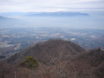 手前が「物聞山」(標高894.5m) 正面遠方は赤城山 |
