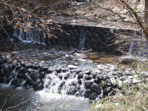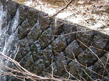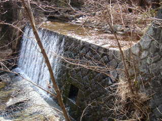 本堰堤、副堰堤からなる重力式堰堤(間地石の谷積み)で、現在も砂防機能を果たしています。