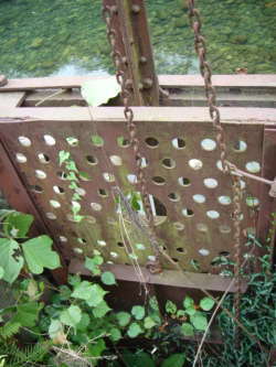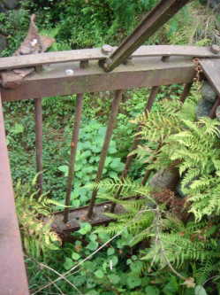 旧 青山取水施設は、道志川右岸の岸壁側部にある自然にできた小さな湾を利用して、鉄柵に玉石をつめた砂利壁(高さ4.55m、長さ8.11m、幅1.51m)で道志川と仕切り、その一部に幅0.9mの水門を取り付けた構造となっていました。水門は通常は開いており、洪水の時には閉じて濁水が直接流入するのを防ぎ、砂利壁を通して浸透してくる水を取り入れるようになっていました。
