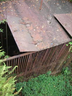 1901(明治34)年に内径22インチ(55.9m)取水管が増設されましたが、取水口が第2期拡張工事(1910(明治43)年8月起工、1915(大正4)年3月竣工)で、さらに1km上流の「鮑子(あびこ)取水堰」に変更され、沈殿池も新設(現在の青山沈殿池)されたため、この取水施設は廃止となり、現在は青山沈殿池構内に旧取水口と旧沈殿池の北側半分(現在 長さ15.1m×30.3m×深さ2.12m)が保存されています。