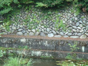 大雨で川の水が濁り水嵩(みずかさ)が増した時は、石垣の間から浸透したきれいな水が流入する構造になっていました。