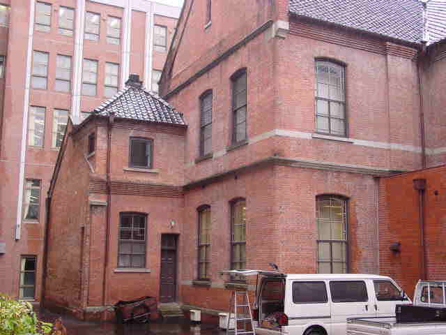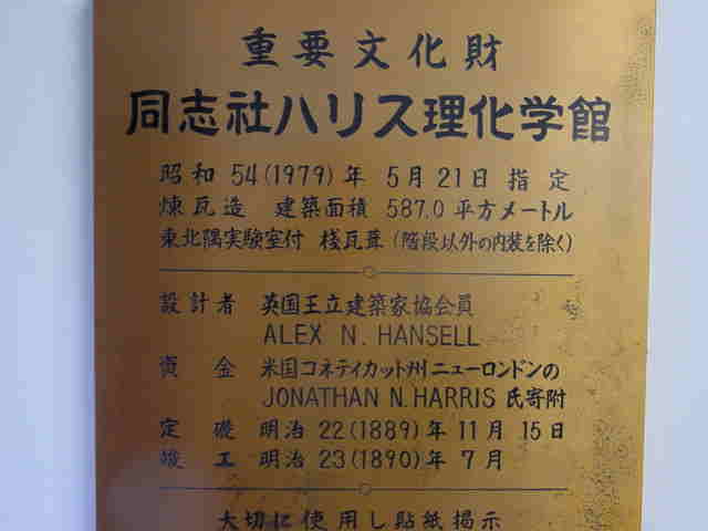 同志社ハリス理化学館 1890(明治23)年棟札 設計 A.N.ハンセル 施工 小島佐兵衛 ほか 煉瓦造二階建 桟瓦葺 国指定重要文化財 京都市上京区今出川通烏丸東入ル 同志社大学・今出川キャンパス