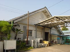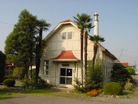 官営工場としてはじまった「内務省勧業寮屑糸紡績所」は、その後「新町三越紡績所」(1887(明治20)年、三井財閥の三越得右衛門に払い下げ)、1902(明治35)年に紡績5社と三井の合併、1911(明治44)鐘淵紡績株式会社の所有となり、現在は(株)カネボウ・フーズ新町工場/(株)カネボウ・アグリテック新町事業所となっています。「旧・製品倉庫」は現在の工場の施設としては使用されていないようですが、「旧・紬糸工場」は外観はそのままで建物内部に新たに食品工場が作られ(緑地法などの関係があり当時の建物の外観が偶然にも残ったことになります)アイスクリーム工場として使われています。