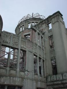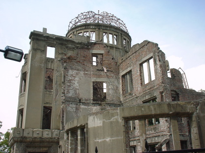 1945(昭和20)年8月6日 午前8時15分、米軍のB29爆撃機が人類史上最初の原子爆弾を広島市の市街地中心部に投下しました。原子爆弾は上空約500mで爆発し、爆心地から半径約2km内の建物は全壊・全焼、半径約4キロメートル内の建物は半壊して広島市の市街地は一瞬にして廃墟と化してしまいました。この原子爆弾による爆風と熱線によって1945(昭和20)年12月末までに約14万人が死亡(現在まで約20万人以上が死亡)しました。そして今日においてもなお多くの方が放射線の後障害などに苦しみ続けています。