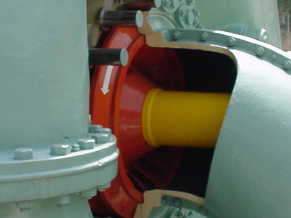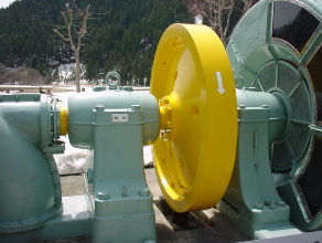 | 水車仕様 水車型式 横軸単輪複流渦巻フランシス水車 有効落差 105.9m 最大出力 3580kw 最大流量 4.16立方メートル/秒 回転速度 600rpm |