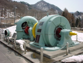 この水車・発電機は、1926(大正15)年から群馬県の吾妻川最上流の東京電力・鹿沢発電所で66年間運転されていましたが、1992(平成4)年発電所の改造工事に伴い撤去となったものです。