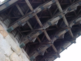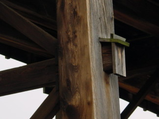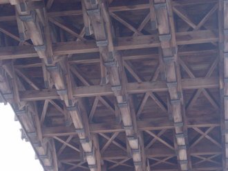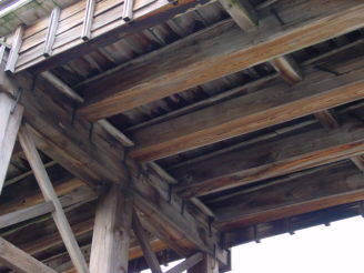 桁材と梁材は、さらに鞍木(V字形に組んであります)と肋木(板状)で補強されています。