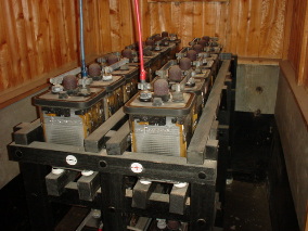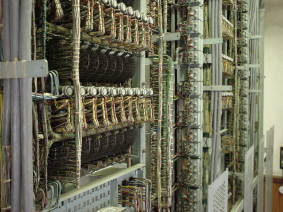 当時の電話交換局は本山事務所にあり、束髪の交換手2名が終日従事したと言われています。現在「鉱山電話資料館」となっている、この電話交換所は1951(昭和26)年に間藤より移設されたもので、昭和40年に自動交換機を導入しました。その後、携帯電話などの発達により、平成12年3月にその役目を終えましたが、現在も使用することが可能で、当時の電磁式の電話の体験や交換機の動く様子、非常用バッテリー、各種電話機などが見学できます。