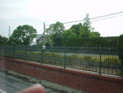 旧三池集治監外塀は現在福岡県立三池工業高等学校外塀となっており福岡県指定有形文化財に指定されています。1883(明治16)年開庁の石炭採掘を主な目的とした囚人収監施設の外塀で高さ5〜6m、現存長600mの煉瓦造です。