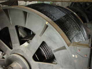 鋼索 15本6撚り、長さ280m、直径32mm、最大抗張力70kgf